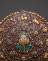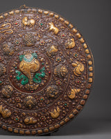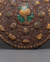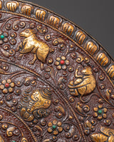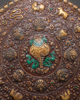 Measuring an impressive 61cm in height and 60cm in width, and weighing 3.28kg, this large wall hanging is meticulously handcrafted from brass and enriched with vibrant acrylic colors that enhance its symbolic details. The animals are arranged in a balanced and sacred composition, making this plaque not only a decorative art piece but also a storytelling symbol of Buddhist cosmology and interconnected life.