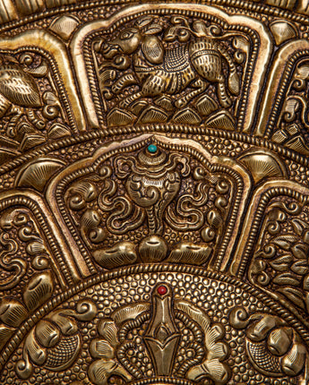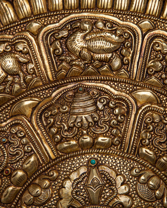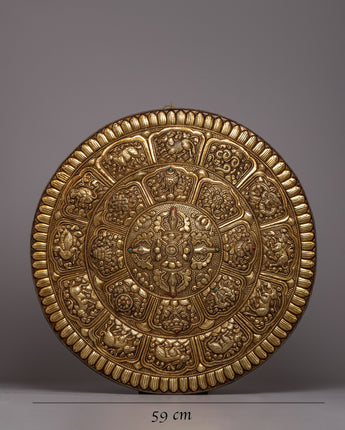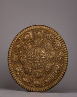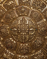 The careful carving of every sign of the Tibetan Zodiac around the outer border of this wall hanging is what makes it unique. This well-considered addition gives the artwork a layer of cultural depth and spiritual resonance, transforming it from being a decorative element into a space for spiritual reflection and connection. A powerful reminder of the unbreakable connection between inner wisdom and outer peace, the Brass Crossed Vajra Mandala Wall Hanging can be found decorating the walls of homes, meditation areas, or sacred shrines.