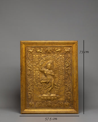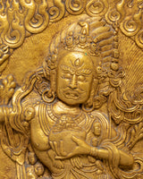 This Dorje Phagmo Thangka Wall Hanging is a powerful and spiritual piece of Tibetan art, representing Dorje Phagmo, the goddess of wisdom, power, and transformation. Measuring 73 cm in height and 57.5 cm in width, this wall hanging is meticulously handcrafted from stone-dust epoxy binding with a wooden back. Dorje Phagmo is a prominent Tibetan deity known for her fierce protection of Dharma and her ability to transform negative energy into wisdom. This artwork embodies her strength and divine energy, making it a potent addition to any spiritual space or Buddhist altar.