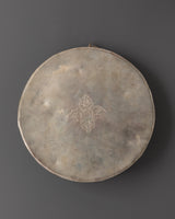 Master Tibetan artisans use centuries-old filigree techniques to produce the complex openwork that provides this mandala its unique lightness and detail. The central Buddha figure is created in great relief, and his peaceful appearance and teaching mudra are depicted with outstanding precision. The figure is surrounded by eight flower motifs and four stylized vajra symbols, representing protection, wisdom, and compassion in Tibetan Buddhist tradition.