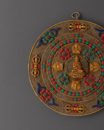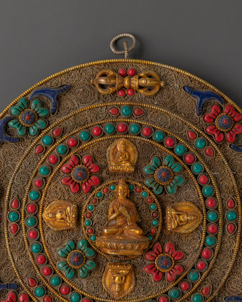 Handcrafted Tibetan Filigree Mandala Wall Hanging | Copper & Brass Buddha Relief