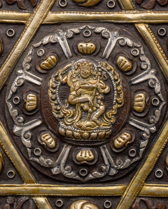 This Tibetan mandala wall décor represents the interconnection of the universe and is a practical spiritual aid for meditation and healing rituals. The copper and silver-plated parts have an antique appearance, showcasing the workmanship of Himalayan artists. Whether on an altar, yoga space, or living room, this sacred geometric symbol wall hanging provides cultural and spiritual depth. It makes an excellent housewarming present, spiritual decor piece, or meditation accessory, adding visual beauty and symbolic value to your sacred place.