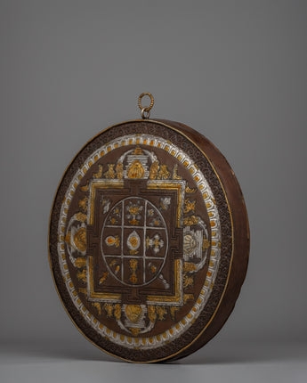 This mandala is ideal for meditation places and promotes spiritual balance and cosmic harmony. As a decorative object, it represents blessings and protection while also providing a focal point for meditation or meditation. This ageless emblem will provide serenity and sacred elegance to your home.