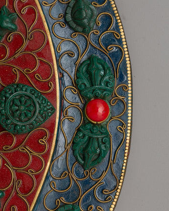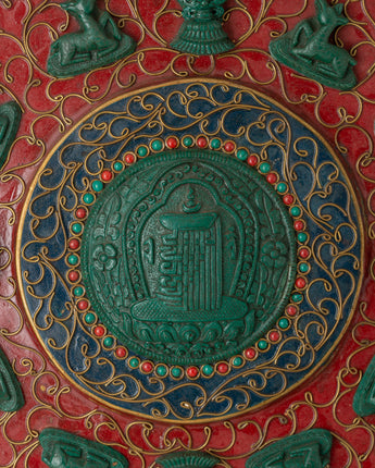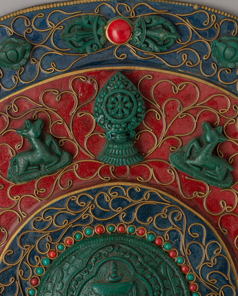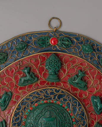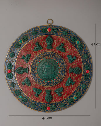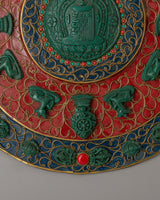Using brass, coral, and turquoise amplifies the piece's mystical importance. Brass provides strength and eternal beauty, while coral and turquoise inlays represent vitality, protection, and tranquillity. This Mandala Wall Art is a beautiful ornamental piece and a valuable spiritual relic that will bring good energy into your house or meditation room. It is ideal for anyone seeking to enhance their living space with meaningful, handcrafted artwork.