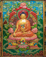 Sacred Medicine Buddha Thangka Wall Hanging | Tibetan Buddhist Healing Art