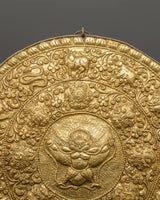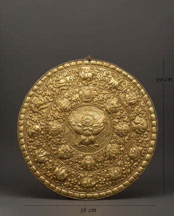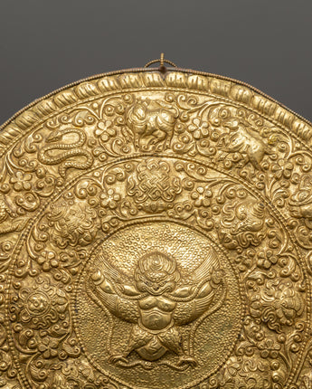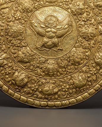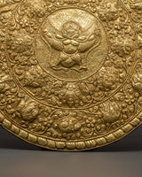 Metal Thangka with Garuda and Sacred Symbols | Brass Wall Hanging