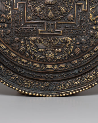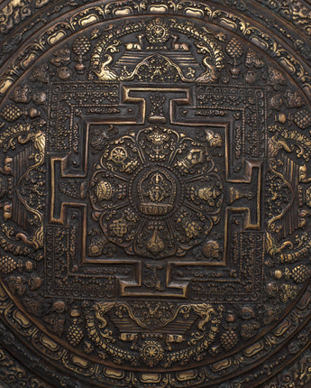 Discover the intricate beauty of our Handcrafted Brass Round Metal Mandala. This mandala, with a diameter of 28.5 cm, is a spiritual symbol representing the universe's harmony and balance in Buddhist and Hindu traditions.