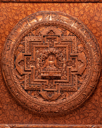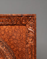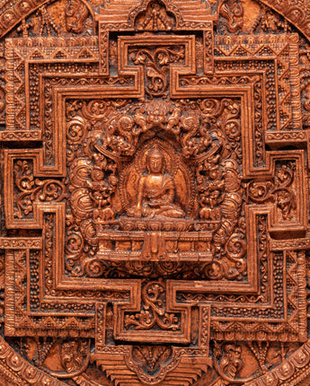 This, the First Buddha Shakyamuni Wall Hanging, is a spectacular, intricately detailed representation of Shakyamuni Buddha, the founder of Buddhism and the embodiment of enlightenment. Standing 76.5 cm high and 76.5 cm wide, this powerful wall hanging is crafted with stone-dust epoxy binding and a wooden back. Shakyamuni Buddha, seated in the classic lotus position, symbolizes peace, wisdom, and the path to enlightenment. The design captures the profound serenity of the Buddha, inviting a sense of calm, reflection, and spiritual growth into any room.