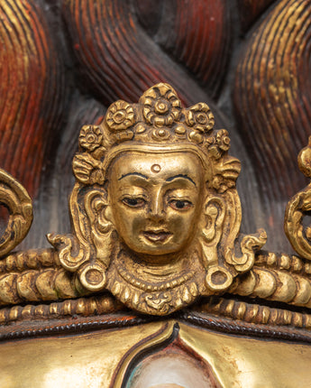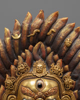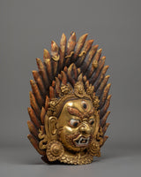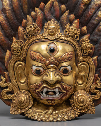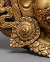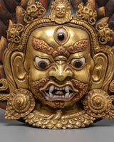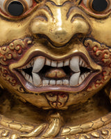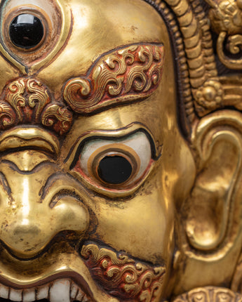 This Gold Gilded Mahakala Wall Hanging is both a holy protector and a strong symbol of Tibetan heritage. It is ideal for altars, meditation places, or home interiors, since it exudes strength, bravery, and heavenly care. Whether you are a Buddhist practitioner or a collector of Himalayan art, this work has both spiritual meaning and artistic majesty - an everlasting representation of power and devotion.