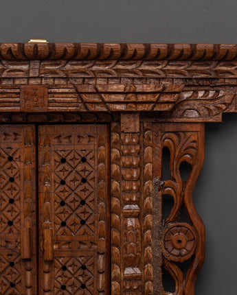 The Traditional Newari Wooden Hand Carved Door is a stunning representation of Nepalese craftsmanship, showcasing intricate hand-carved artistry. Measuring 24.5 cm in height and 29.5 cm in width, and weighing 0.48 kg, this door is crafted from wood. The door design features the traditional Newari architectural motifs, making it an ideal piece for those who appreciate cultural art, spiritual symbolism, or traditional craftsmanship. Its intricate details and craftsmanship embody the beauty of Nepalese heritage and are perfect for enhancing your sacred space, home, or office.