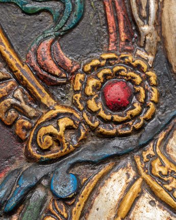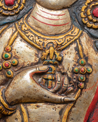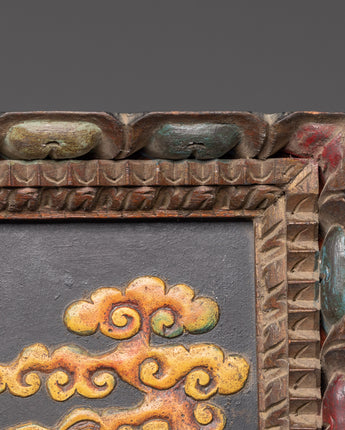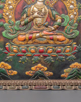 The exquisite outer wooden frame is thoughtfully created to highlight the holy presence of Vajrasattva, who is adored in Tibetan Buddhism for his relationship with cleansing and enlightenment. This artwork, weighing 4.86kg, commands attention and is ideal for displaying over an altar, as a centerpiece for a meditation corner, or as a spectacular exhibition of spiritual art. The hand-painted embellishments highlight the craftsmanship and commitment put into each work, which honors Buddhist culture and legacy.