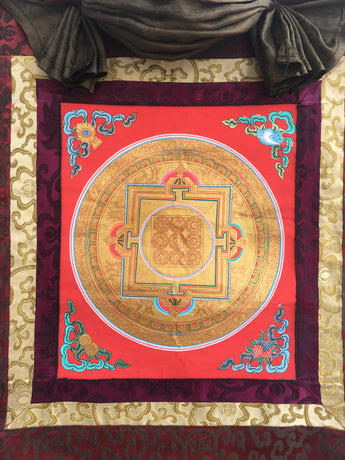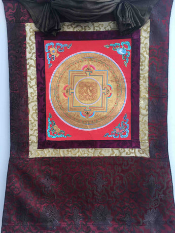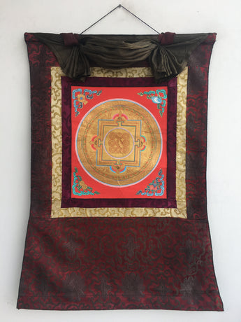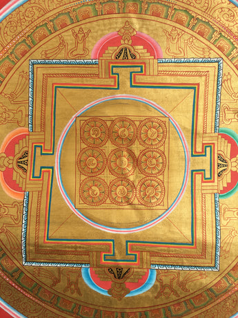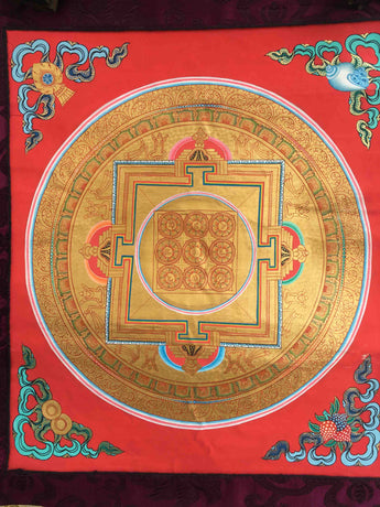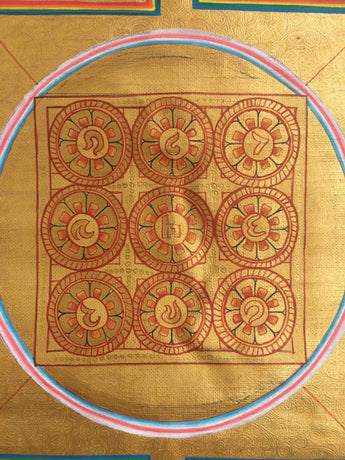 The 9 Planets Mandala Thangka unveils a cosmic symphony, intertwining the energies of our solar system's celestial entities. This intricately crafted artwork weaves together the essence of each planet, painting a celestial dance of diverse forces. Each vibrant hue and meticulous detail embodies the unique qualities and influences of the planets, inviting cosmic resonance into any space. Radiating with cosmic balance and symbolic depth, this mandala serves as a portal to cosmic understanding and alignment. Perfect for cosmic explorers, astrological enthusiasts, or those seeking to embrace universal energies, this thangka beckons meditation and connection with the celestial realms. Embrace the cosmic harmony and channel the mystique of the planets through this captivating mandala, a window into the cosmic tapestry that surrounds us.