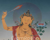Divine Manjushri Thangka Print for Yoga Practice | Manjushri Symbol of Wisdom and Compassion Wall Hanging | Nepal Art