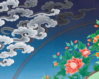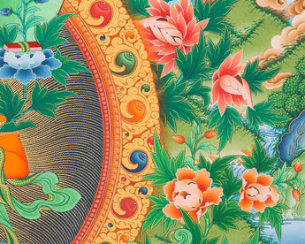 As requested for consecrations/blessings, we can take thangka print to Monasteries/Rinpoches from nearby Boudha Stupa. We kindly ask you to offer $20 for the monasteries for blessings/consecration service.