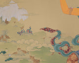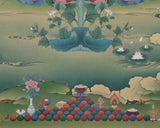 Discover the profound presence of Manjushri, the embodiment of compassion and wisdom, through this exquisite Manjushri Thangka Print. Immerse yourself in the serene aura of this divine artwork, expertly created using the Giclée printing technique on a museum-quality matte cotton canvas. Within the tranquil canvas, Manjushri, the peaceful deity, emanates a soothing energy that resonates with the depths of your being. With a focus on meditation, this Thangka serves as a gateway to explore the boundless realms of inner peace and spiritual enlightenment. Adorned in vibrant hues and adorned with intricate details, this Manjushri Canvas Print encapsulates the timeless wisdom and compassion that Manjushri embodies. As you gaze upon the art print, feel a sense of tranquility enveloping your surroundings, guiding you towards a state of profound contemplation and clarity. Embrace the power of compassion and wisdom in your spiritual practice with this print. Allow its presence to create an ambiance of tranquility and serenity, nurturing your meditation practice and cultivating a deeper connection with your inner self.
