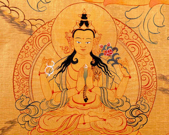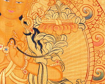 Manjushree the Buddha of Ultimate Wisdom is portrayed here with extremely levels of details . It is one of our favorite paintings from a very well acclaimed Artist Mr.Man Bdr. Lama.