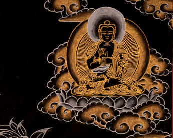 Traditional Tibetan painting techniques were used to create our thangka. It is a distinctive piece made with real 24K gold and colors from natural stones.