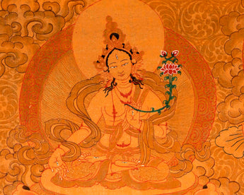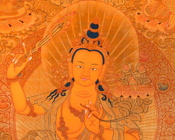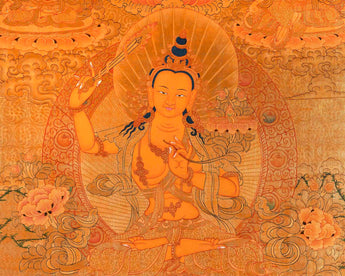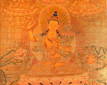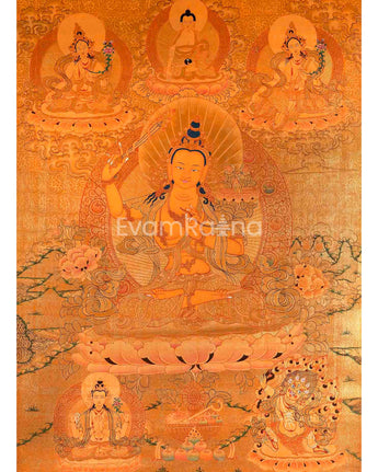 Full Gold Style Arya Boddhisattva Manjushri Original Hand painted Thangka | Religious Tibetan Wall Hanging Art |