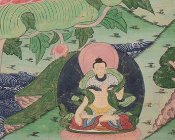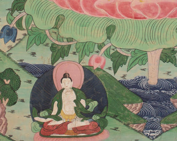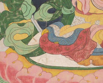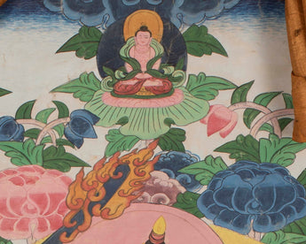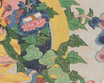 Our thangka is a handpainted Tibetan art done using traditional methods. It is a unique piece created using genuine 24K gold and natural stone colors.