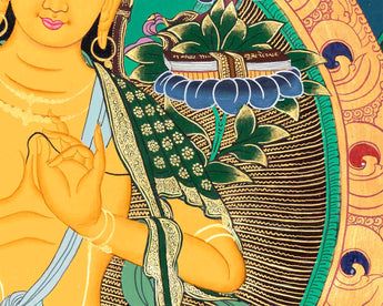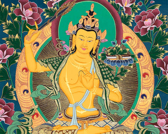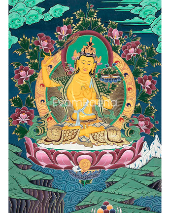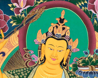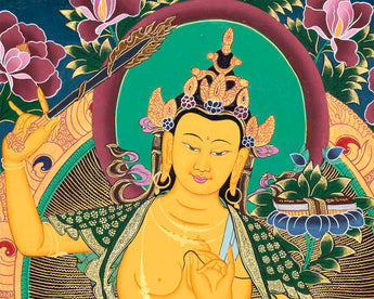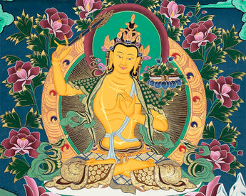 The Manjushree Thangka is a magnificent work of art that vividly and accurately depicts the bodhisattva of knowledge, Manjushree. Manjushree is a highly regarded person in Buddhism who is renowned for his intelligence, understanding, and prowess with the sword of wisdom.
