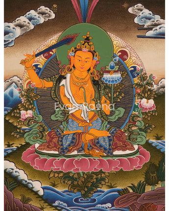 According to one tradition, he attained perfect enlightenment a long time back. The Buddhists believe that he is the sole deity of wisdom who blesses the devotees to sharpen their memory and intellect. As a result, a devotee can penetrate the vast and profound meanings of Buddha's teachings. Without the blessings of Mañjuśri, nobody can develop the realization of emptiness.