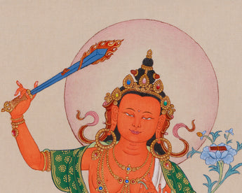 Sacred Hand-Painted Manjushri (Jampelyang) Thangka in Karma Gadri Style