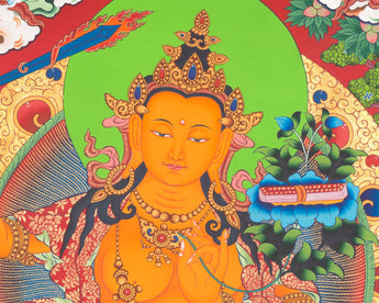 It goes without saying that every detail of a painting has a symbolic meaning. Regardless of your religious affiliation, a thangka can help you on your path to enlightenment, whether you practice Buddhism or have other religious convictions. Thangkas are paintings that depict deities with various iconographic elements and symbolism that encourage meditation on the teachings of the god they depict. Any thangka is intended to aid in the removal of the film of ignorance, which is a significant barrier to the road to enlightenment. The Thangka is revered as a holy item. They promote positivity, spread Buddhism's teachings, bring about peace, harmony, and oneness, and dispel any negative energy that may be there.