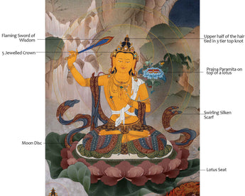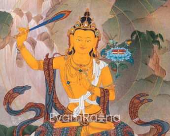 Manjushri with Chenrezig and Vajrapani Thangka | Hand Painted Artwork of Traditional Buddhism | Meditation Art