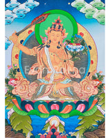 Our Original Hand-Painted Manjushri Thangka is a captivating masterpiece portraying the Bodhisattva of Wisdom, Manjushri, renowned for his supreme wisdom symbolized by a flaming sword and scripture. This Manjushri Thangka, adorned with intricate brushwork and vibrant colors, serves as a visual and spiritual focal point, inviting practitioners to connect with the enlightened qualities of wisdom, understanding, and clarity during meditation. Placed prominently on your meditation shrine, it becomes a powerful tool for cultivating mindfulness, establishing a mood that invites reflective thinking, and strengthening your bond with Manjushri's spiritual force.