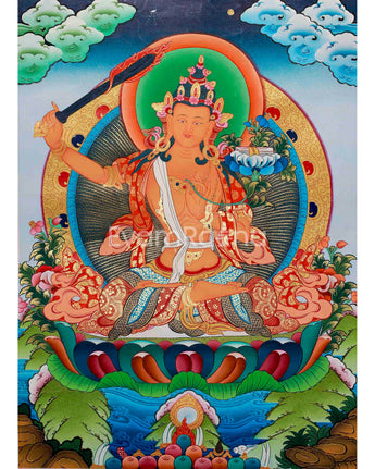 Original Hand-Painted Manjushri Thangka | Manjushree Bodhisattva of Wisdom