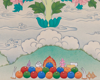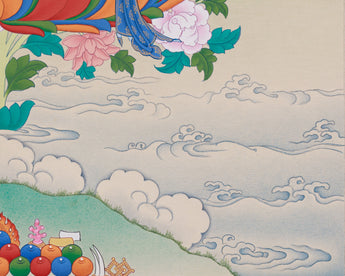 As you requested for consecrations/blessings, we can take the thangka to nearby monasteries/Rinpoches from the Boudha Stupa. We kindly ask that you contribute $50 to the monasteries for these blessing/consecration services.