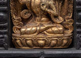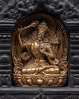 Gold Plated Manjushri Statue with Wooden Frame for Altar | Handcrafted Copper Statue