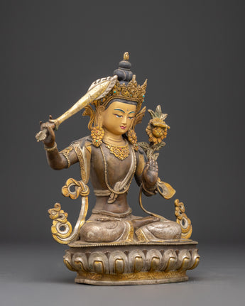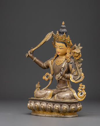 Handcrafted Tibetan Manjushri Statue | Wisdom Deity Sculpture for Home Altar