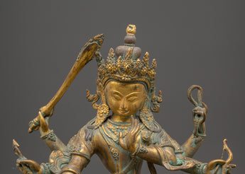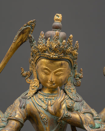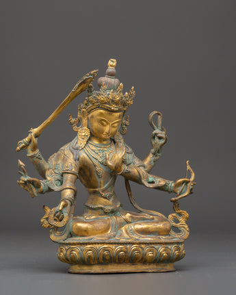 Handmade Maha Manjushri Statue | Vintage Manjushri Statue for Meditation Altar