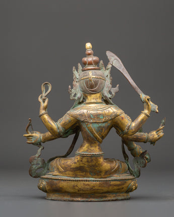 Handmade Maha Manjushri Statue | Antique Tibetan Copper Sculpture