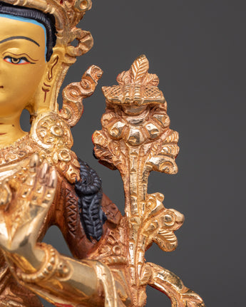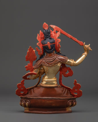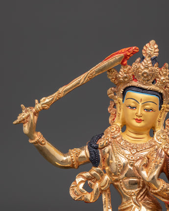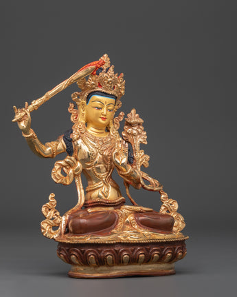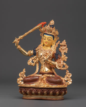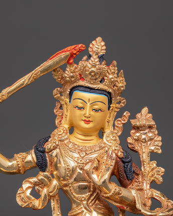 Tibetan Gold Plated Manjushri Wisdom Buddha Statue | Flaming Sword of Wisdom and Enlightenment