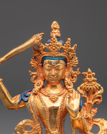 Handcrafted Tibetan Buddhist Manjushri | Copper with Gold Plating