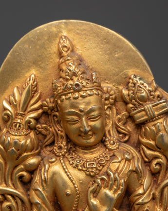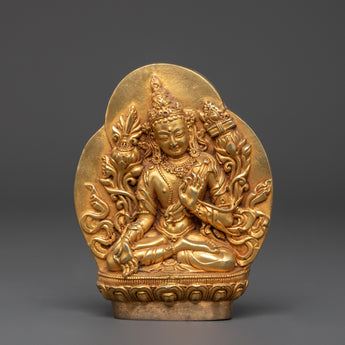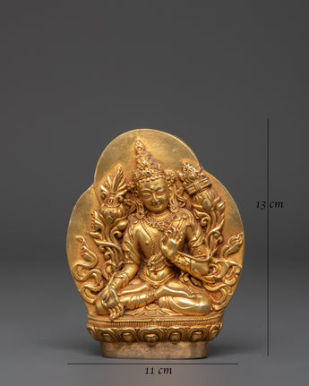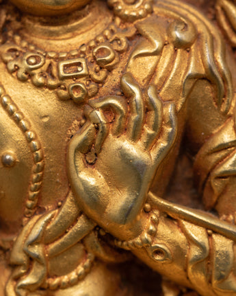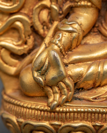 Every detail of this Electro gold-plated Manjushri figurine reflects artistry and spiritual symbolism. The radiant form captures Manjushri’s compassionate yet powerful presence, while intricate details highlight the deity’s sacred attributes. Perfect for meditation rooms, prayer altars, and study spaces, this figurine not only enhances the spiritual atmosphere but also inspires clarity, focus, and deeper understanding. Ideal for those seeking knowledge, enlightenment, and spiritual clarity, the Wisdom Deity Manjushri Figurine is a meaningful addition to any Buddhist collection or sacred space. Whether placed in a home temple, yoga studio, or gifted as a spiritual token, this Manjushri figurine embodies wisdom and divine guidance, making it an essential symbol for meditation, learning, and spiritual growth.
