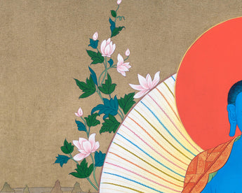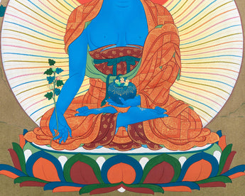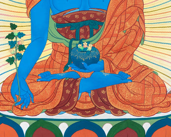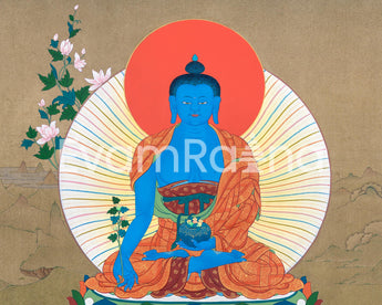 Elevate your home decor and bring positive energy with the Karma Gadri Thangka Print of Medicine Buddha. This beautiful print features the revered medicine buddha, known for granting blessings of good health and spiritual well-being. Perfect for any space seeking peace and harmony.
