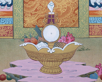 As requested for consecrations/blessings, we can take thangka to Monasteries/Rinpoches from nearby Boudha Stupa. We kindly ask you to offer $50 for the monasteries for blessings/consecration service.