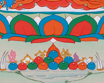 As requested for consecrations/blessings, we can take thangka to Monasteries/Rinpoches from nearby Boudha Stupa. We kindly ask you to offer $50 for the monasteries for blessings/consecration services.