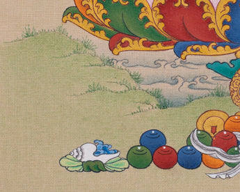 As requested for consecrations/blessings, we can take thangka to Monasteries/Rinpoches from nearby Boudha Stupa. We kindly ask you to offer $50 for the monasteries for blessings/consecration services.