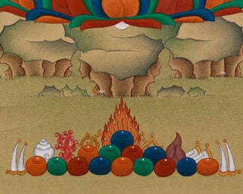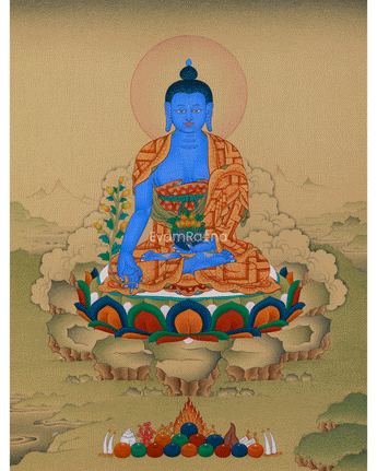 Beyond its beauty, this painting acts as a spiritual healing tool. The vivid Lhasa stone hues and 24K gold accents amplify Bhaisajyaguru's sacred aura, filling the space with divine energy that purifies and elevates. Ideal for meditation rooms, altars, or healing spaces, it promotes wellness. It suits any setting seeking divine energy, compassion, and healing.