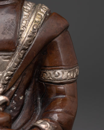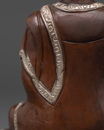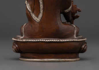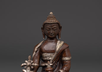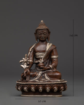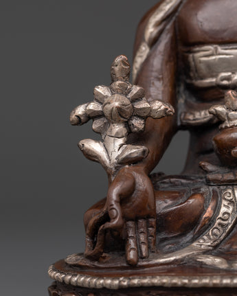 The Medicine Buddha statue is crafted to connect you with profound healing energies and positive vibrations. A silver-plated, oxidized finish enhances its authentic aesthetic, complementing the copper base. Ideal for Tibetan Buddhism practitioners, meditation enthusiasts, and anyone seeking spiritual healing, this statue serves as a meaningful addition to your sacred space.