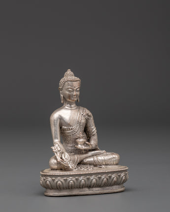 This Sacred Healing Buddha Sculpture, expertly crafted from copper and finished with a silver plating, is designed to bring a deep sense of inner peace and healing to your meditation practice.
