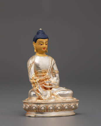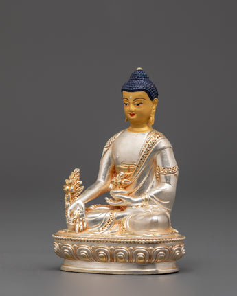 Silver Plated Medicine Buddha Statue | Altar and Meditation Decor