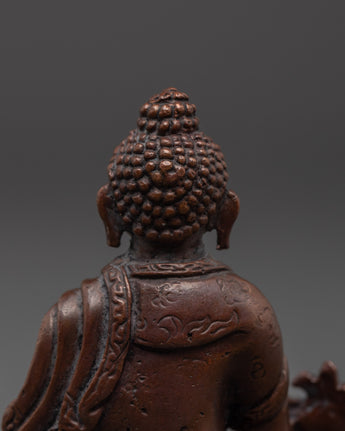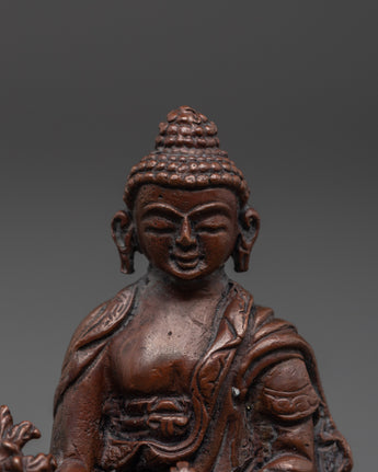 This Medicine Buddha statue, created with meticulous attention to detail, adds a sense of calm and inner serenity to any space. The Buddha of Healing's energy is enhanced by the corroded copper body, which provides an archaic appearance. This Buddhist Healing Art provides a sense of comfort and safety by evoking the Medicine Buddha's ancient healing powers through its peaceful and compassionate presence. Whether you want to strengthen your connection with Tibetan Buddhism or simply add a meaningful ornamental item to your house, this statue will serve as a constant reminder of the power of spiritual healing and balance.