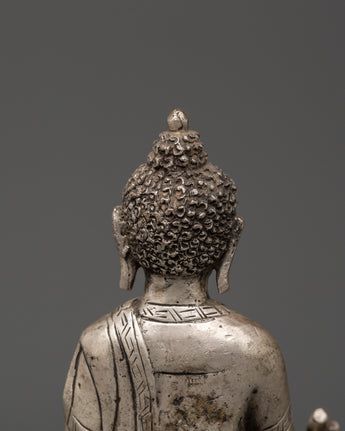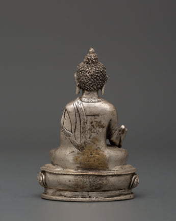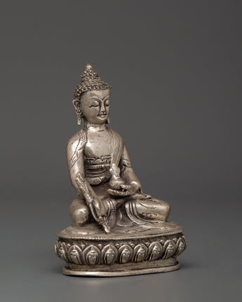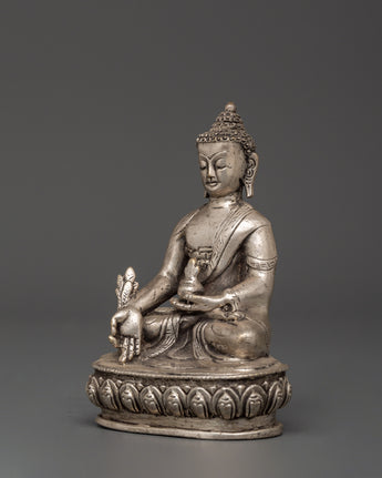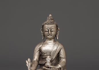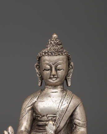 Tibetan Medicine Buddha Statue from Nepal | Handcrafted Silver-Plated Copper