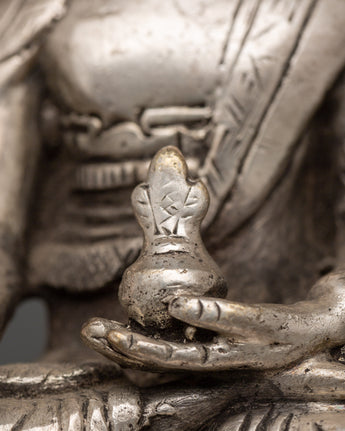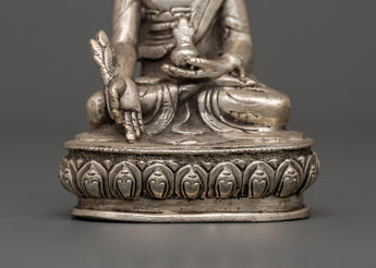 Crafted by expert artisans in Nepal, this spiritual wellness emblem seamlessly combines traditional design with profound meaning. The silver plating gives it a brilliant, sacred luster that enhances its appearance in any altar, meditation space, or spiritual décor setting. The Medicine Buddha, also known as the Buddha of Healing, is revered for promoting physical and mental well-being, and his mere presence is believed to alleviate illness and suffering. This statue makes an excellent gift for healers, spiritual practitioners, or anybody seeking serenity, safety, and harmony in their home.