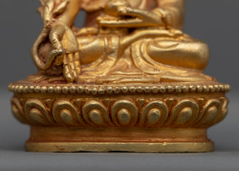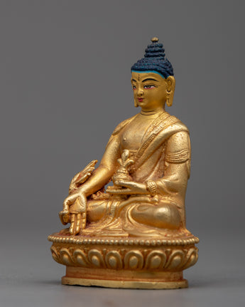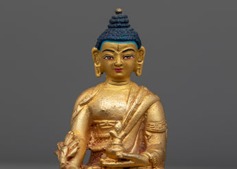 The artisan's skill and devotion are showcased in this small masterpiece, which creates a beautiful fusion of spirituality and form. The lavish 24k gold gilding highlights the Medicine Buddha's profound healing essence with an ethereal glow.